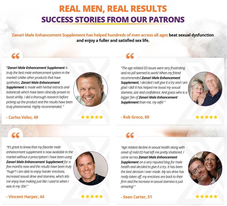 Many men have reported positive experiences with Zanari Male Enhancement Gummies. They have noticed improvements in their sexual performance and overall satisfaction in the bedroom. Customers praise the product for its natural ingredients and effectiveness in enhancing male vitality.